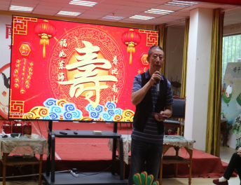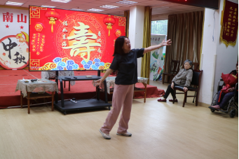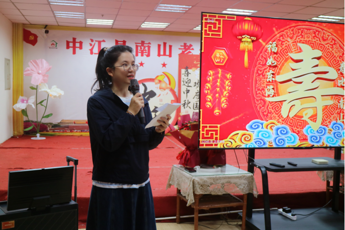 文艺表演环节精彩纷呈,中江梦舞阁志愿者带来了活力满满的舞蹈表演,灵动的舞姿赢得现场掌声不断;小朋友朗诵《水调歌头》声情并茂,稚嫩的声音传递出对百岁老人的美好祝愿;家属代表也主动登台,献上了精心准备的舞蹈,为庆典增添了更多温情。恰逢中秋佳节,庆典中途设置了中秋传统项目——猜灯谜游戏环节,工作人员提前准备了趣味十足的灯谜,在场人员积极参与、踊跃竞猜,现场欢声笑语不断,充分调动了大家的参与热情。